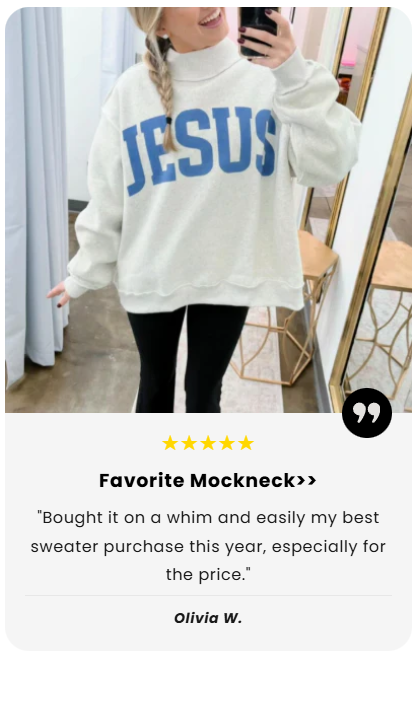 The Jesus Mock Neck feels like the sweater you reach for when you want to feel grounded. Soft. Comfortable. Familiar. Easy to live in.